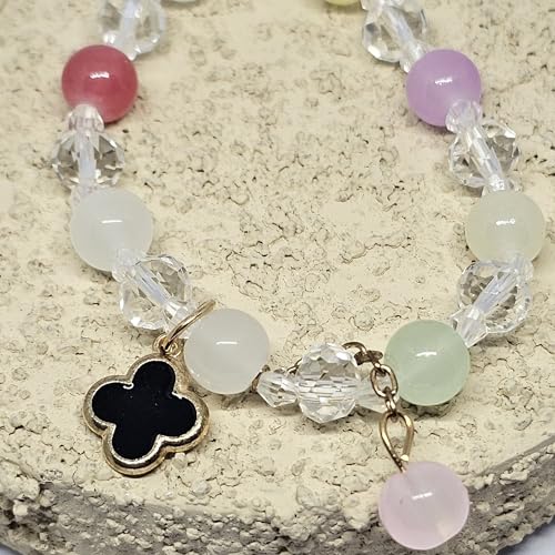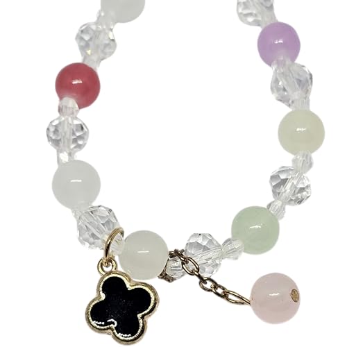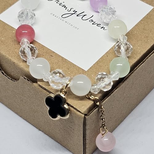 Handmade Beaded Bracelet, Nature-Inspired Jewelry Gift of Luck & Charm (Clover Edition Series) (Black-clover)