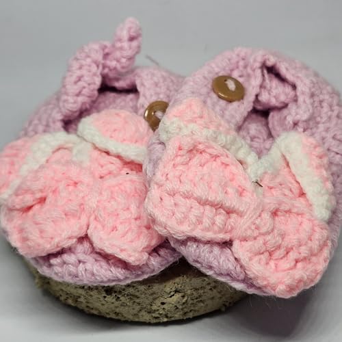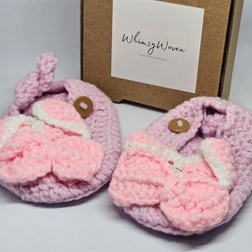 WhimsyWoven Handmade Crochet Baby Shoes – Soft Prewalker Shoes for Baby Girls & Boys – 3–12 Month Size – Gender Neutral Gift (Lilac Bunny)