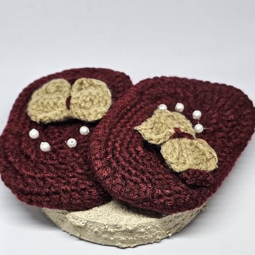 WhimsyWoven Handmade Crochet Baby Shoes – Soft Prewalker Shoes for Baby Girls & Boys – 3–12 Month Size – Gender Neutral Gift (Maroon Bead)