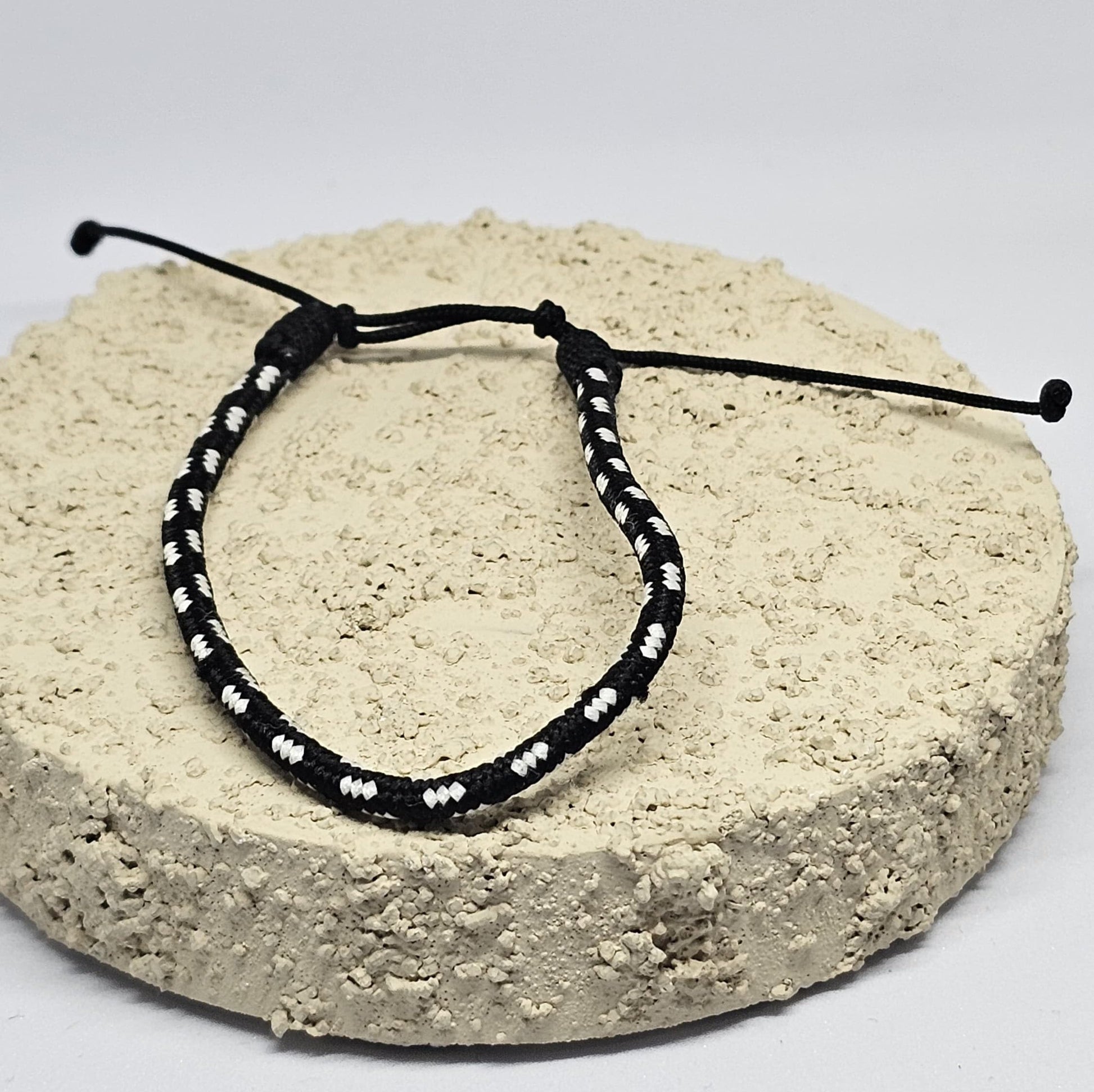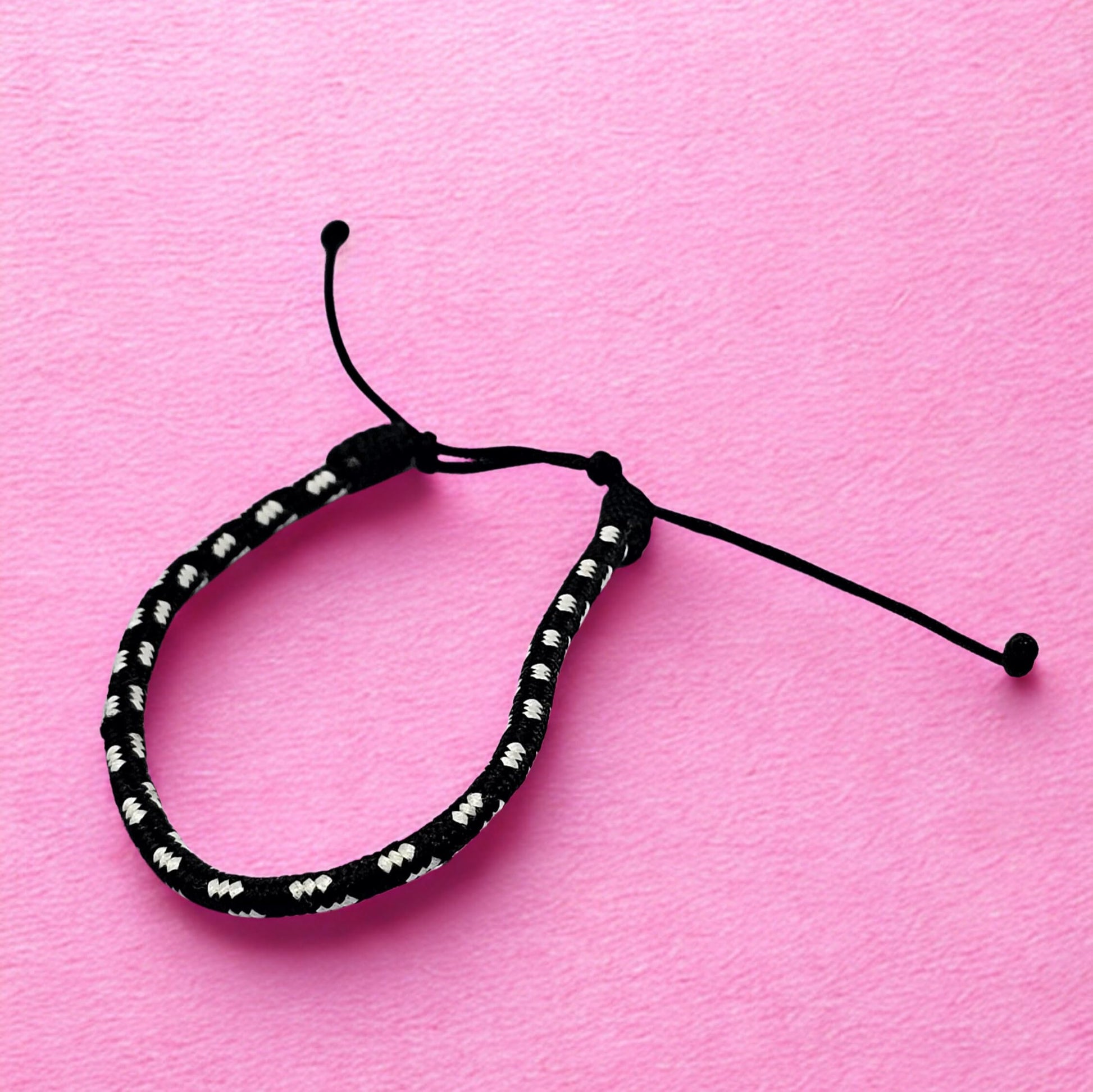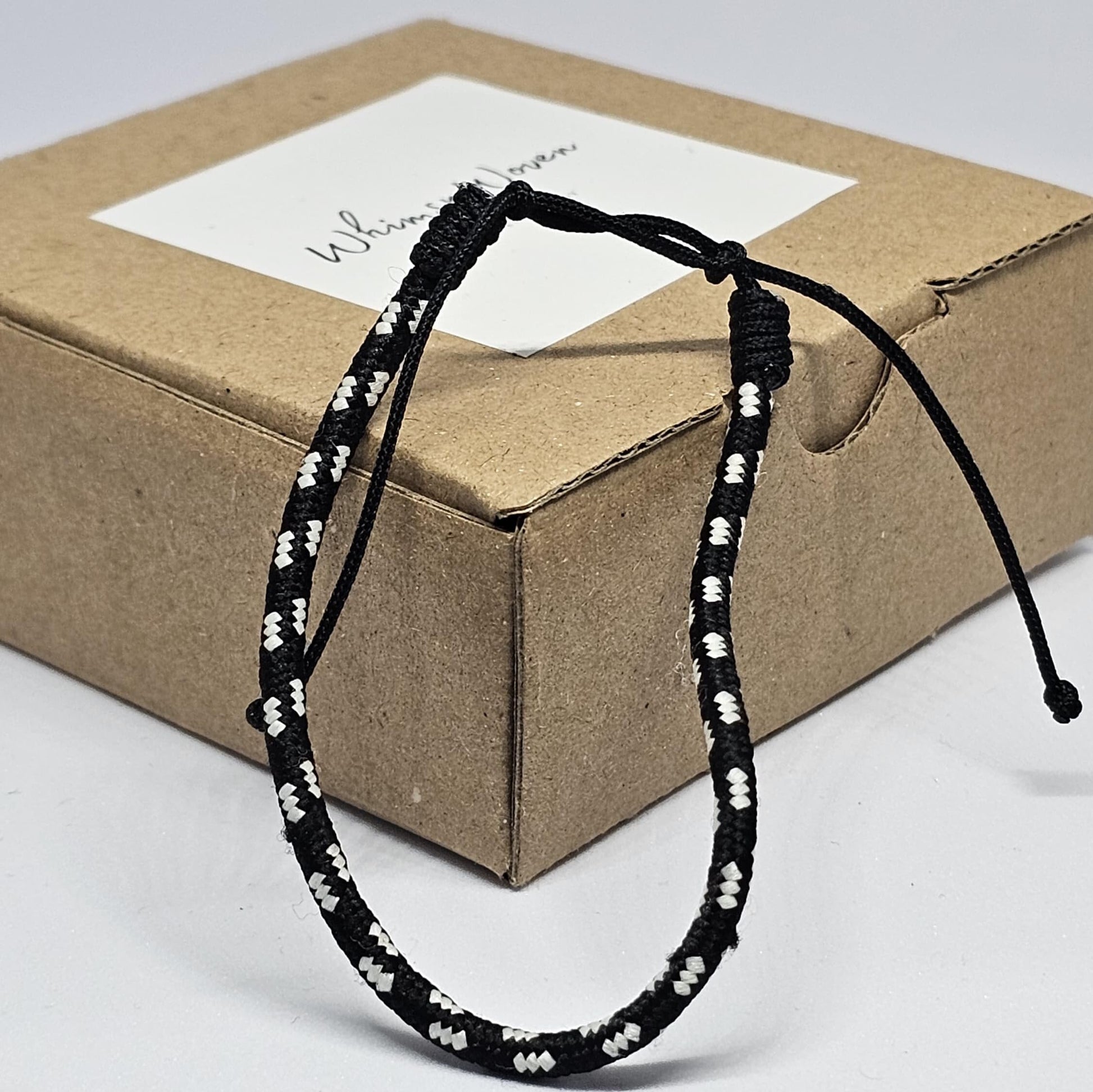 WhimsyWoven Handmade Ethnic Cord Bracelet – Adjustable Unisex Accessory Edition Boho Vibes for Everyday Wear (Black with White Stripe)